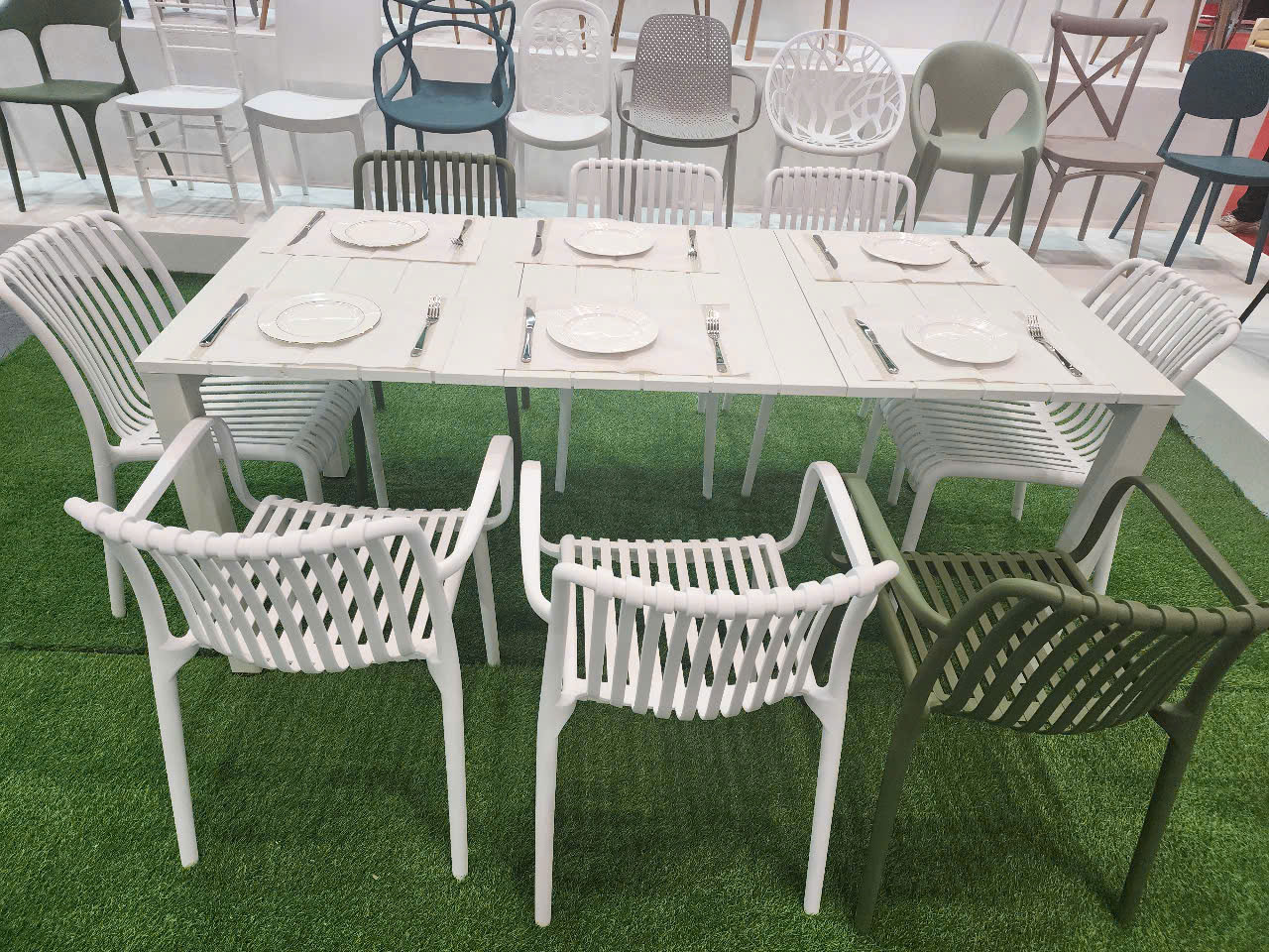 Bộ bàn ăn BBCF100 cao cấp nhựa đúc khung sắt 8 ghế nhựa đúc nguyên khối có tay ngoài trời đẹp dành cho bàn ăn, nhà hàng. Hãy cùng Nội Thất Lan Anh tìm hiểu chi tiết sản phẩm này nhé