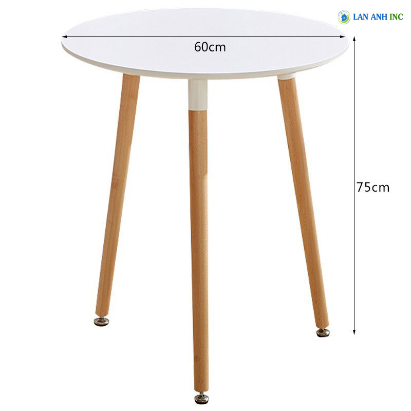Bộ sản phẩm bao gồm: 1 bàn tròn 3 chân DK60 và 4 ghế eames đệm chân gỗ