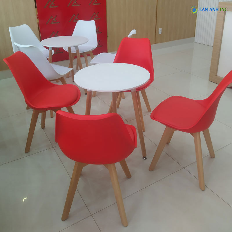 • Ghế: Mặt nhựa có nệm bọc simili, chân gỗ beech cao cấp.