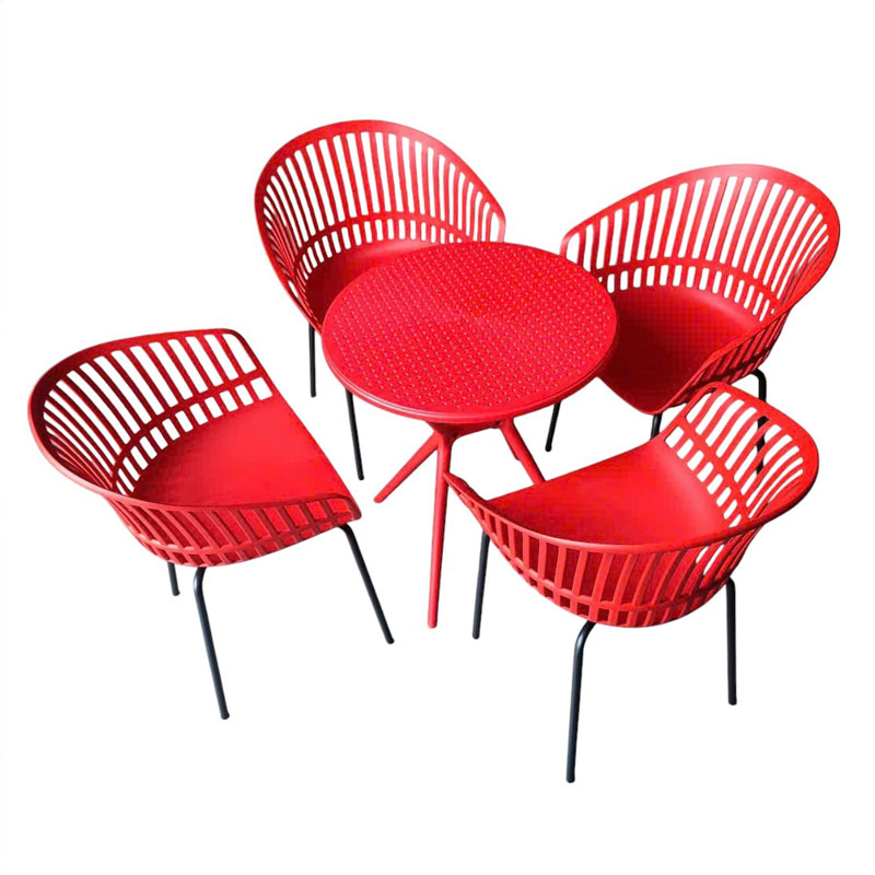 Thông Tin Chi Tiết Sản Phẩm Bộ Bàn Cafe Tròn 4 Ghế Nhựa Chân Săt.