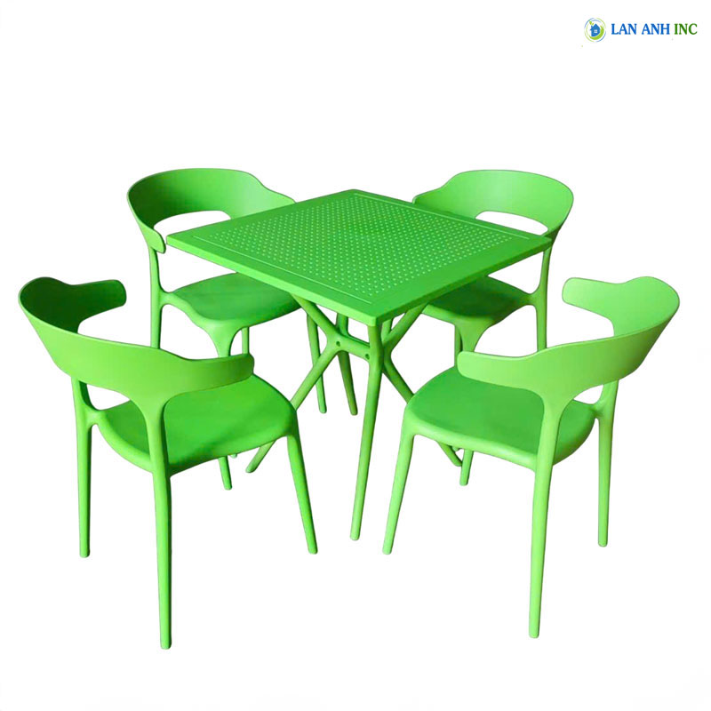 Bộ Bàn Ghế Cafe Nhựa Vuông 4 Ghế Nhựa Đúc BBCF58