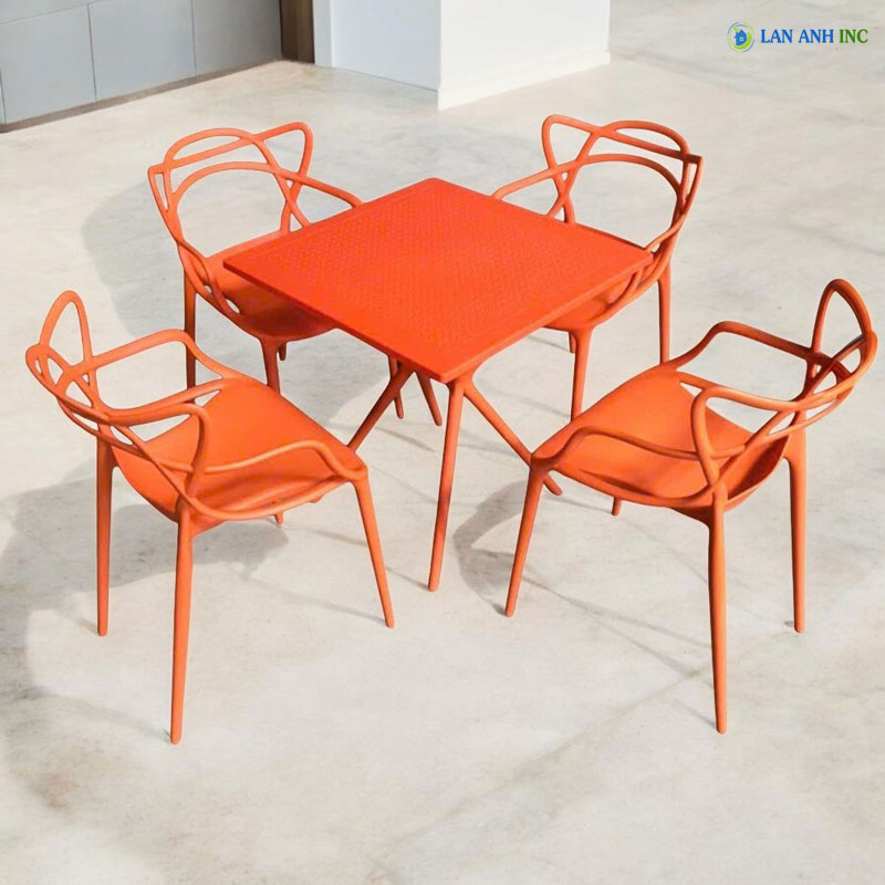 - Cấu hình đồng bộ, hoàn hảo: Bộ sản phẩm bao gồm 1 bàn vuông nhựa LAB3024 và 4 ghế nhựa đúc LAD3008, tạo nên một tổng thể hài hòa, thống nhất, dễ dàng phối hợp với nhiều phong cách nội thất khác nhau.