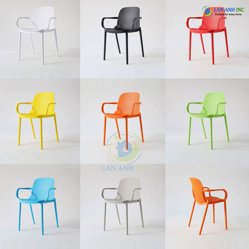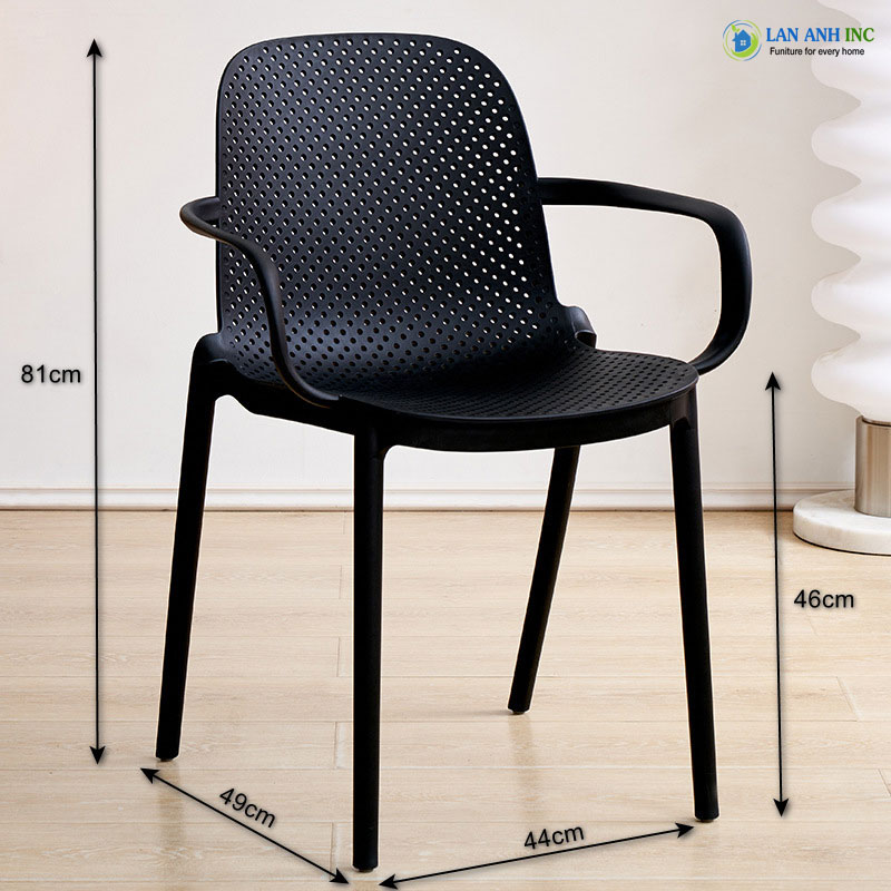 Thông tin chi tiết sản phẩm ghế nhựa đúc có tay xếp chồng LAD3017 thuộc bộ bàn cafe ngoài trời BBCF50