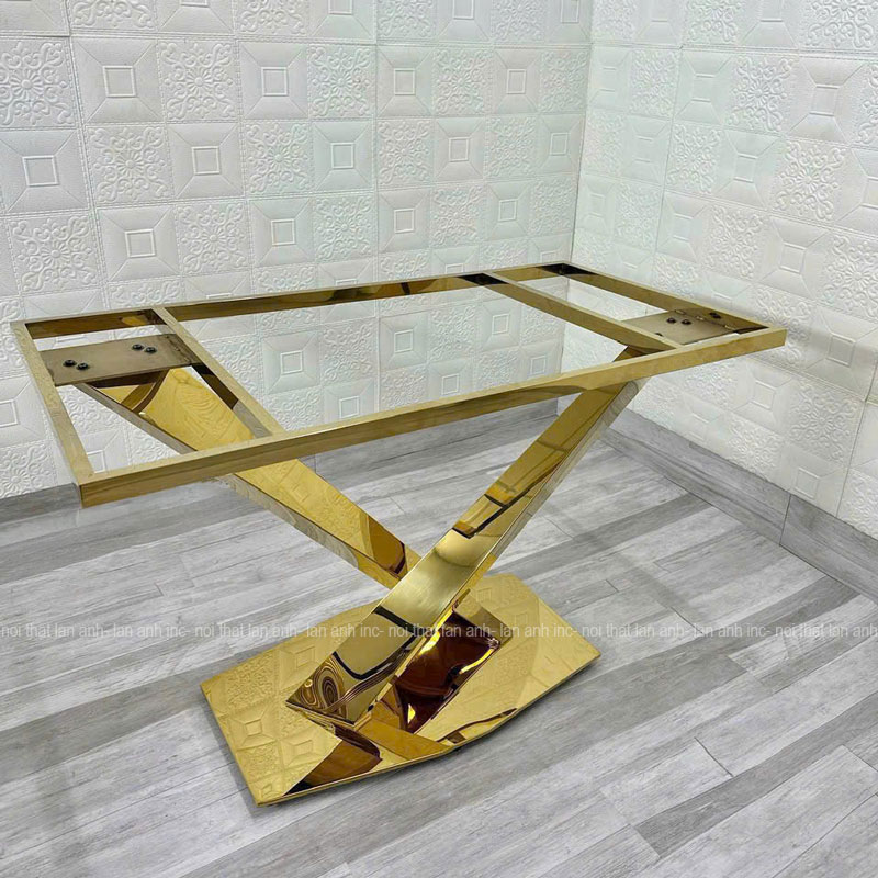 Chân bàn ăn LACB18 inox mạ vàng cao cấp kết hợp với các loại mặt bàn dài từ 120-180cm.