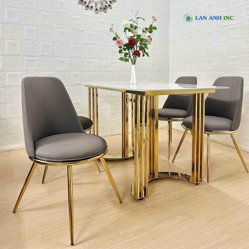 - Điểm nhấn độc đáo: Chân ghế được mạ vàng PVD nổi bật (tùy phiên bản), tạo điểm nhấn kim loại sáng bóng, nâng tầm sự sang trọng cho sản phẩm.