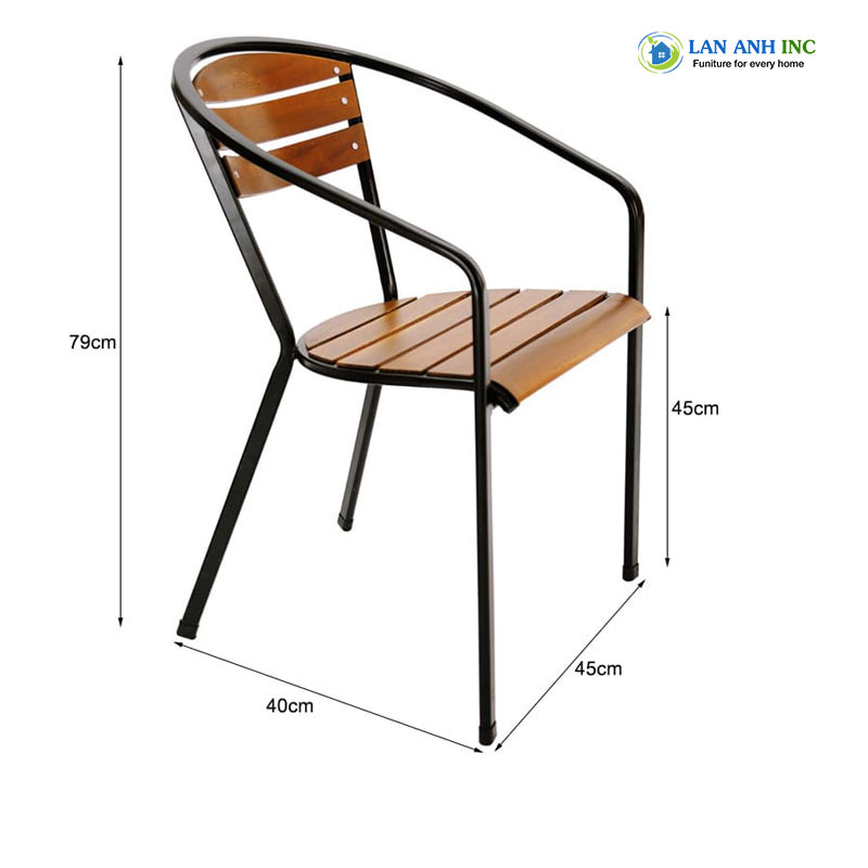 Thông tin sản phẩm ghế cafe ngoài trời nan gỗ chân sắt cao sơn tĩnh điện bền đẹp Moon 2