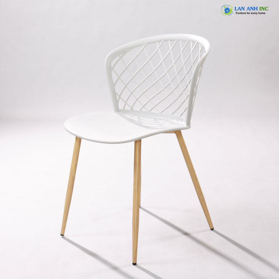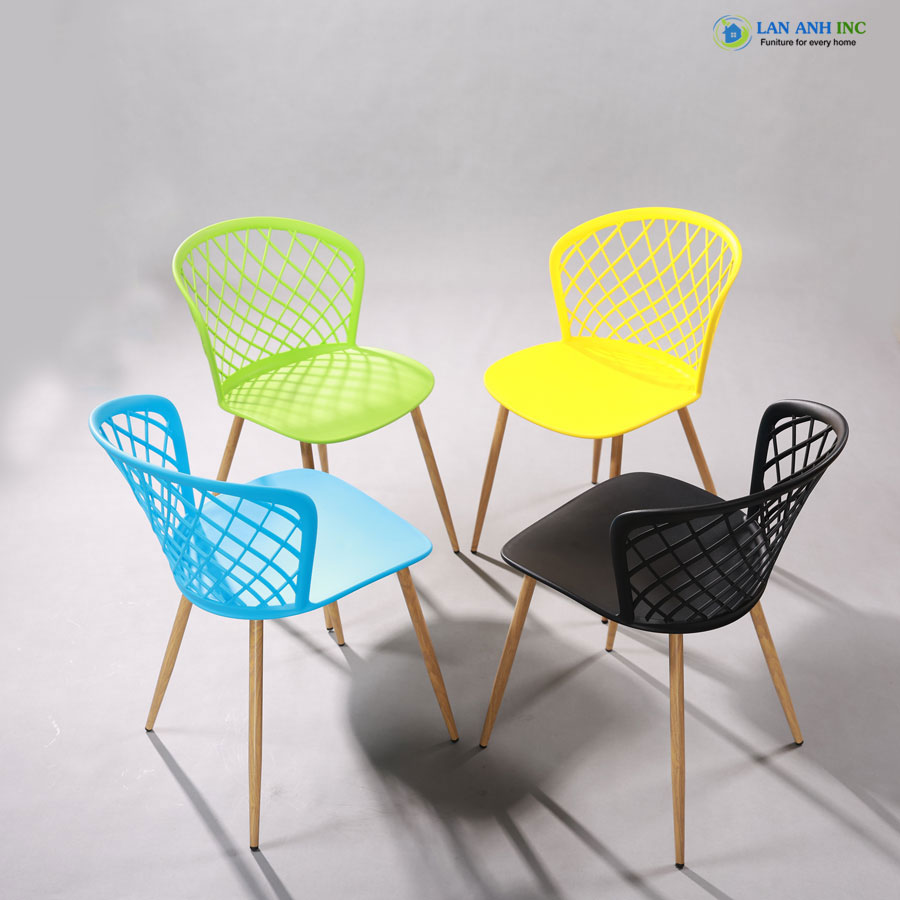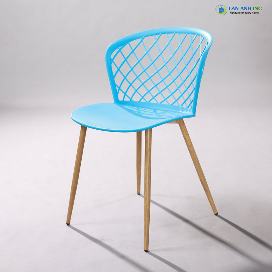 - Chất liệu cao cấp: Thân ghế nhựa PP bền bỉ, chân sắt sơn tĩnh điện giả gỗ vững chắc.
