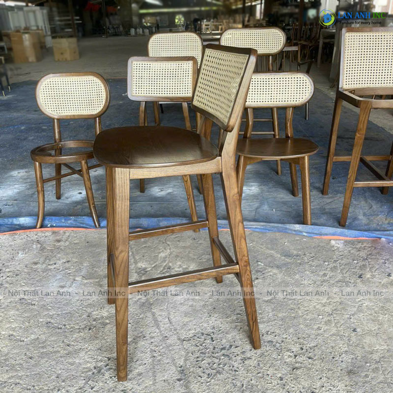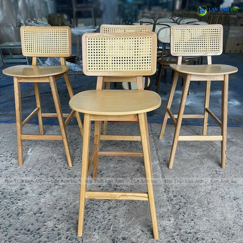 Đặc điểm nổi bật ghế quầy bar gỗ ash lưng mây đan mắt cáo đẹp LAB4016