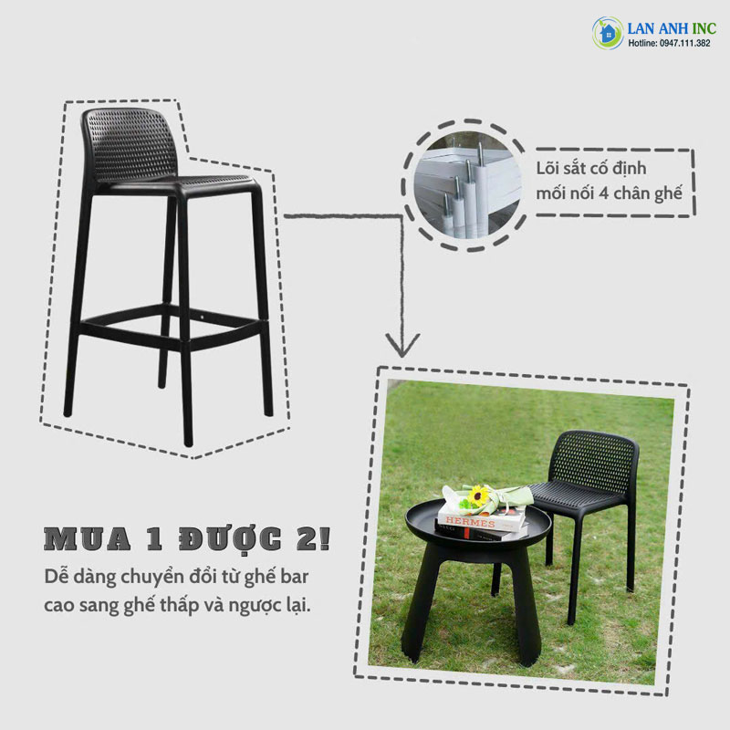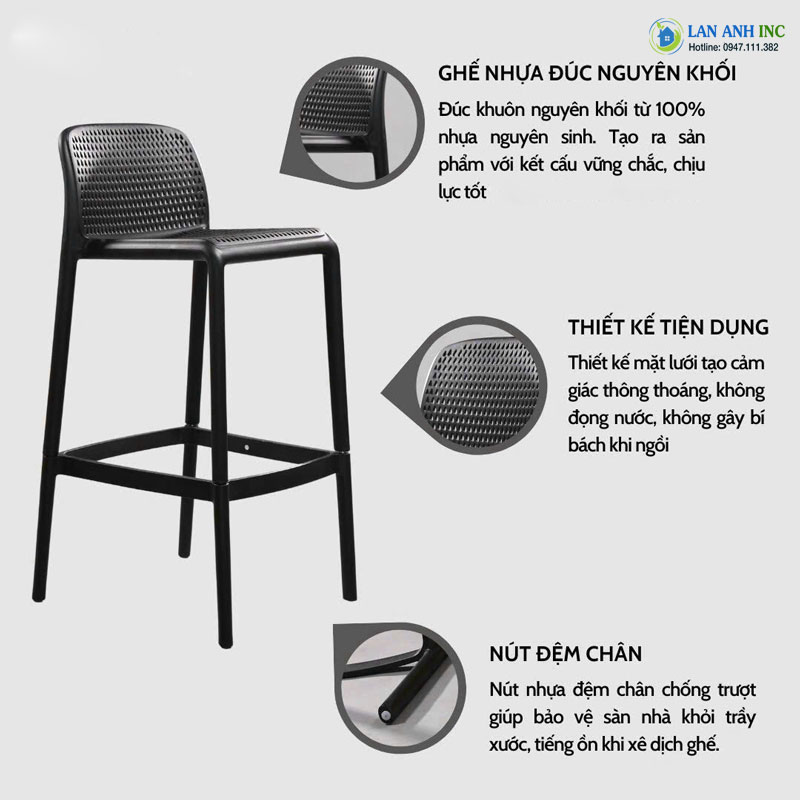 Ghế quầy bar nhựa PP cao cấp LA3025