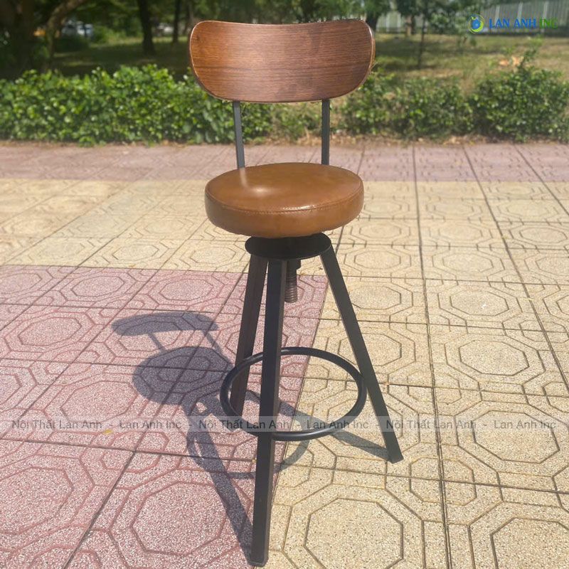 Đặc điểm nổi bật ghế quầy bar tựa gỗ chân sắt mặt đệm nâng hạ LAB4017